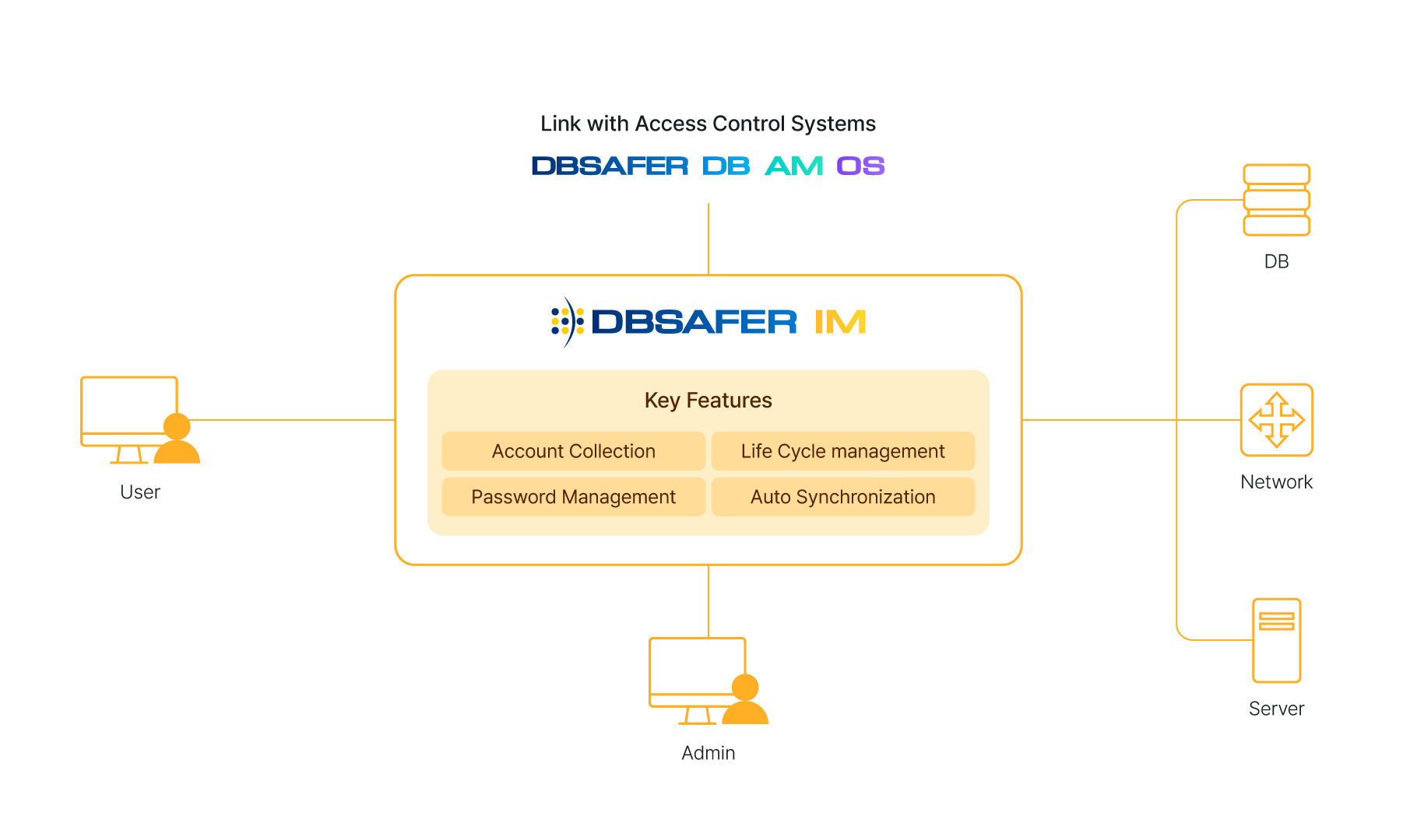 DBSAFER IM integrates and manages multiple OS and DBMS accounts of target servers